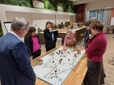 Daarna was het tijd om actief te worden. Actief met het verduurzamen van de regio. Via de warmtegame werden de deelnemers met drie speelborden van Rivierenland aan het werk gezet om de door hun gekozen gemeente van het gas af te ‘spelen’. In verschillende spelrondes werd er eerst geïsoleerd, dan gezocht naar geothermie en grote restwarmte. De derde ronde ging al om kleinere bronnen als zonthermie en aquathermie en als afsluitende ronde kon voor de overgebleven huizen worden gekozen voor biogas of elektriciteit. Natuurlijk elke ronde met de beperking dat bronnen niet oneindig zijn of dat er soms voorwaarden aan zijn die onbeperkte inzet onmogelijk maken. Toen de netbeheerder in de laatste ronde erop wees dat ook elektriciteit niet onbeperkt ingezet kan worden werd het voor de meeste gemeentes lastig om ook het laatste aardgas weg te krijgen.